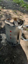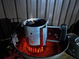 Эффект быстрого розжига основан на физическом принципе тяги горячего воздуха в трубе стартера. Просто заполните трубу стартера угольными брикетами, поместите под него кубики для розжига или смятую бумагу, и подожгите их. Больше ничего не требуется. Около 15-20 минут и брикеты полностью разгорятся, и вы сможете высыпать их в свой гриль или мангал.